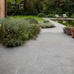Burma Blue Limestone Antiqued paving is a dark honed finish with a light tumbled edge, leaving a slight aged appearance. It will boost any modern or classic outdoor setting.