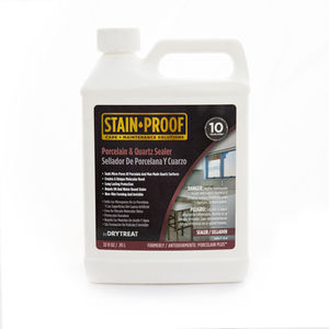 STAIN PROOF Porcelain Plus Sealer: High-performance silane/silicone-based sealer for exterior porcelain paving and indoor quartz countertops. Penetrates the surface without changing colour, texture, or slip resistance. Leaves a natural, matte dry finish.