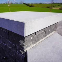 Our Luogh Liscannor are handcrafted sandstone caps with a natural riven texture and soft light grey tones.